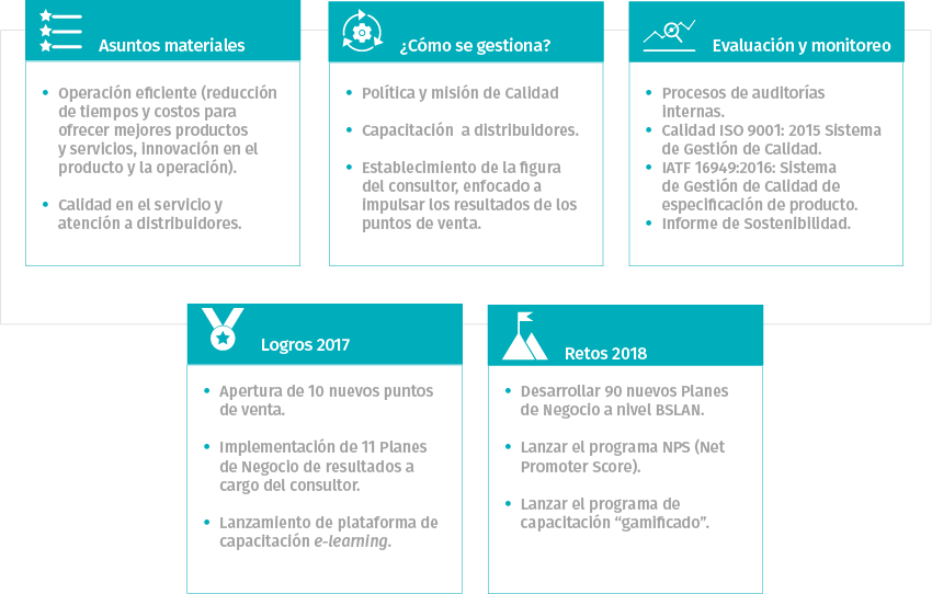 Con base en su Misión de Calidad, Bridgestone está enfocado a mejorar sus procesos entregando productos y servicios de calidad superior en toda la cadena de valor. Así la empresa mejora el desempeño y crea valor para el cliente a través de la innovación en todos los aspectos del negocio.