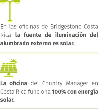 Con la instalación de paneles solares en las oficinas, Bridgestone Costa Rica contribuye al alcance del ODS 7, meta 7.2: De aquí a 2030, aumentar considerablemente la proporción de energía renovable en el conjunto de fuentes energéticas.