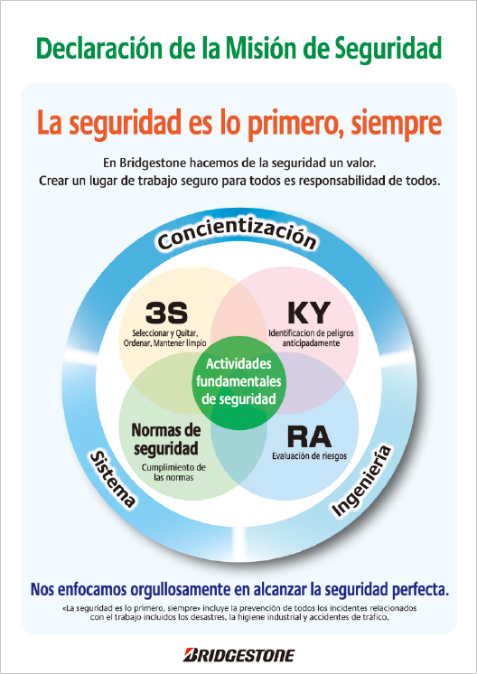 La Misión de Seguridad de Bridgestone promueve la salud y la seguridad de todos los colaboradores, cumpliendo con las leyes y estatutos establecidos para cada uno de los lugares de trabajo.
