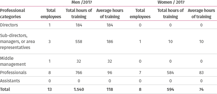 In 2017, a total of 21 employees were trained, including senior and management, middle managers, assistants, and operators. This implies that 66% of Bridgestone Colombia received some type of training over the course of the year.