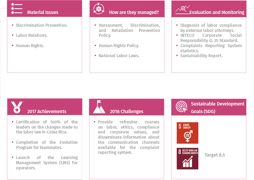 The company fosters an inclusive culture in which all Bridgestone entities and locations adopt and apply ethical labor practices, build trust with teammates, and embody respect for diversity and for fundamental Human Rights.