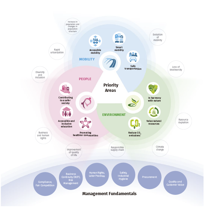 Based on the Bridgestone Essence, mission and legacy, "Our Way of Serving" is aligned with the company's way of doing business and organizes Corporate Social Responsibility efforts based on three Priority Areas (AP):