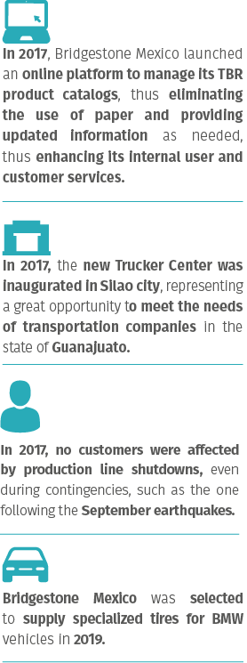 In the case of dealers, Bridgestone Mexico interacts with them through various communication channels, including a Call Center, email, and personal visits by advisors, social networks, and the Bridgestone chat.