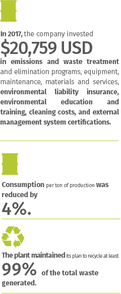 Compared to 2016, the company reduced its total waste by 14% this year, thanks to the correct application of the Environmental Management System, the improvements implemented to ensure operational efficiencies, and the heightened awareness of all employees on the subject matter.