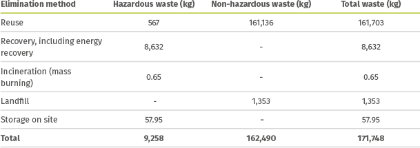 In terms of the environment, Bandag prioritizes its proper waste management processes to comply with the applicable national legislation, the provisions related to the certifications obtained and the Environmental Management System’s internal procedures. Following are the disposal methods used in 2017 and the amount of waste disposed through each of these:
