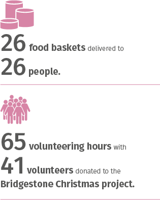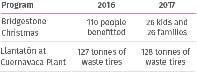 Bridgestone Mexico supported the Eugenia Children’s Home with recreational activities and the distribution of food baskets in 2017. A total of 26 Christmas gifts and 26 food baskets were collected and distributed by the company’s volunteers.