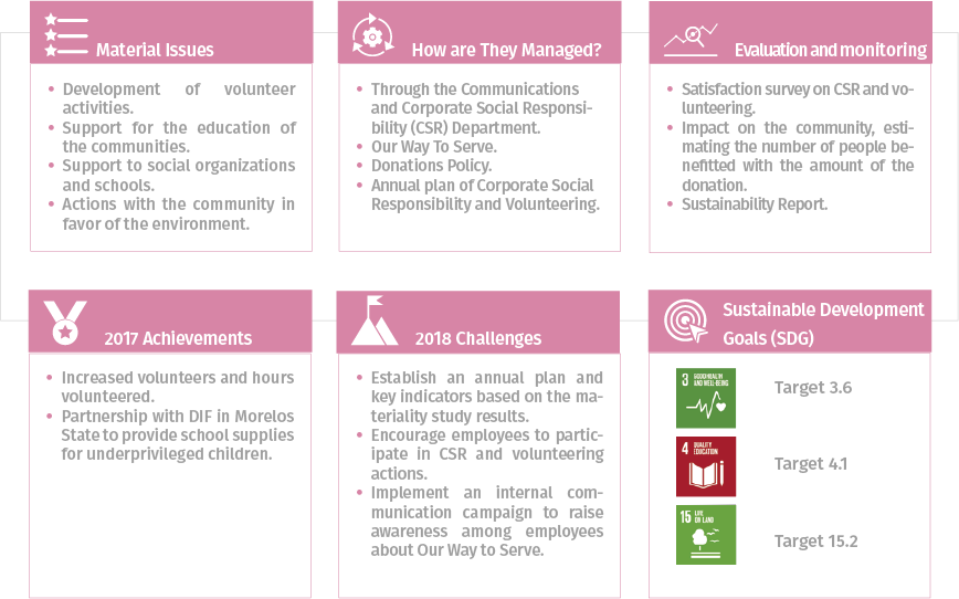 One of the working methods that Bridgestone Mexico executes to concretize its social initiatives is volunteering, which allows the integration and direct participation of collaborators in solving problems to transcend their environment.