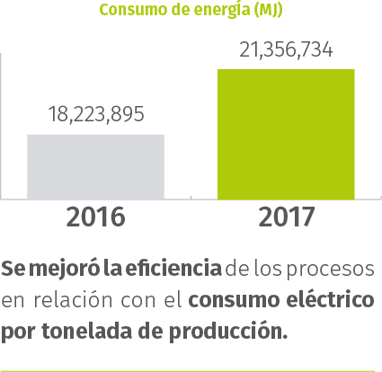 Con el fin de reducir cada vez más los consumos de energía, durante 2017 se instalaron Skylights en el área de mezclado y lámparas LED, además de que se actualizaron las lámparas de emergencia de bajo consumo de electricidad.