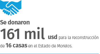A su vez, en colaboración con Fundación Hábitat para la Humanidad México, se hizo la donación de 161,000 USD para la reconstrucción de 16 casas en el municipio de Tlaquiltenango, uno de los más afectados en el Estado de Morelos.