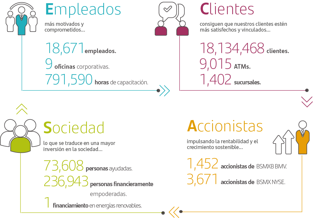 Nuestro continuo crecimiento como empresa nos ha permitido tener presencia en toda la República Mexicana y brindar nuestros servicios y productos financieros a diversos sectores de la sociedad, incluyendo las industrias manufacturera, agropecuaria, de comunicaciones y transporte, de construcción, de comercio, turismo y minería, así como a entidades gubernamentales y cartera menudeo, entre otros. De esta manera contribuimos al progreso de personas físicas de bajo, medio y alto ingreso, a PyMEs y a corporaciones de mercado medio y alto.