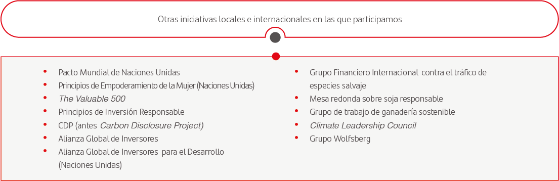 Somos miembros fundadores de los principios de Banca Responsable impulsados por Naciones Unidas. Asimismo, participamos junto con otros 15 bancos, en la iniciativa piloto de UNEP FI para implementar las recomendaciones del TCFD para la banca.
