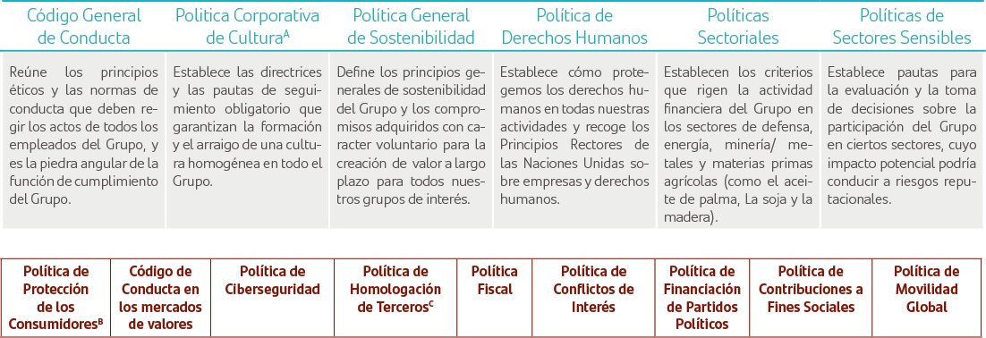 La comisión de Banca Responsable, Sostenibilidad y Cultura ayuda al consejo de administración a cumplir con sus responsabilidades de supervisión en relación con la estrategia general de banca responsable del Grupo. Se centra en la cultura corporativa, en la ética y la conducta, en el impacto de la transformación digital en nuestro método de trabajo, en las políticas del Grupo sobre asuntos y sectores sensibles y en cómo el Grupo impulsa un crecimiento inclusivo y sostenible.