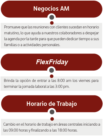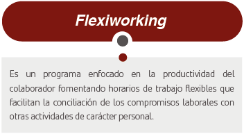 Comprendemos que el bienestar de una persona va más allá del ámbito laboral y por eso apoyamos a nuestros colaboradores para que se desarrollen satisfactoriamente en todos los aspectos de su vida mediante la implementación de un robusto programa de Conciliación Vida -Trabajo.