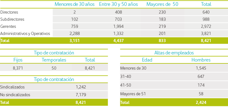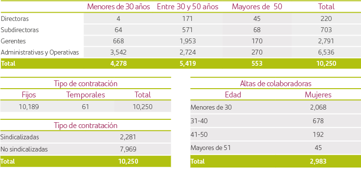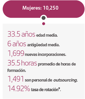 En 2019 nuestra plantilla de empleados sumó 18,671 personas, además de 2,681 trabajadores en el esquema de outsourcing. El 18.9% de los empleados cuenta con un contrato colectivo de trabajo; es decir, son trabajadores sindicalizados.