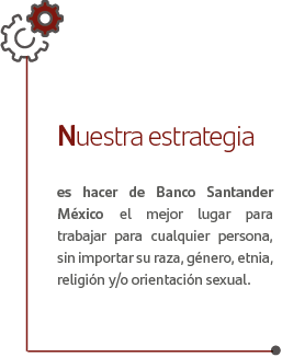 Estamos convencidos de que el fomento a la diversidad abona a la innovación, creatividad y bienestar de los colaboradores. La diversidad e inclusión son una pieza fundamental de nuestra cultura Santander. Somos incluyentes y encontramos en la diversidad un atributo de excelencia, ya que todo equipo se enriquece con las diferencias de sus miembros.