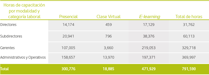 11 La diferencia entre empleados capacitados y el total de colaboradores reportados al cierre de 2019 se debe a losCapacitación personalizada que tiene el objetivo de impulsar el desarrollo de los empleados y profesionalizarlos a través de una formación innovadora, como el uso de dispositivos móviles y la tecnología, vinculándolos con diferentes espacios virtuales que les permitan seleccionar el lugar y el momento de tomar sus cursos.