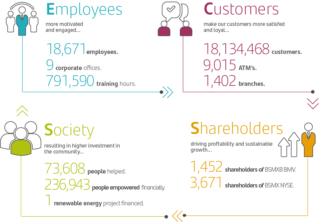 Our continuing growth as a company has allowed us to extend our presence throughout Mexico, offering our financial products and services to numerous segments within society, including the manufacturing, agricultural, communications and transport, construction, commercial, tourism and mining sectors, government agencies and retail portfolio, among others. This is how we contribute to the progress of people from low-, middleand high-income backgrounds, SME’s and corporations focusing on the mid- and high-end market.