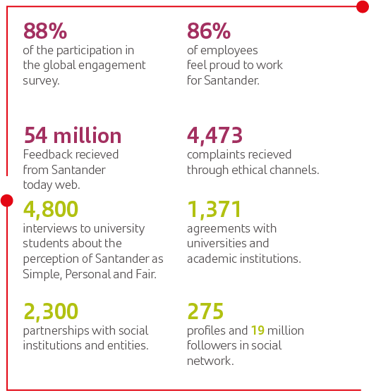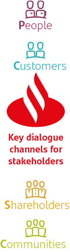 We participate in consultations held by third parties about the impact the Group has on the sustainable development agenda. Furthermore, to understand our overall impact on society, we are always assessing social and environmental externalities (both negative and positive). This helps Santander to detect possible risks for business; and identify opportunities to create additional value for the society and ways in which we can protect the environment.