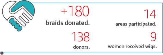Thanks to the enormous heart of our employees we were able to collect more than 180 braids for the elaboration of oncological wigs. We worked in alliance with México Sonríe Foundation which, through the weaving and elaboration of wigs, economically and psychologically empowers vulnerable women who generate an income through this work.