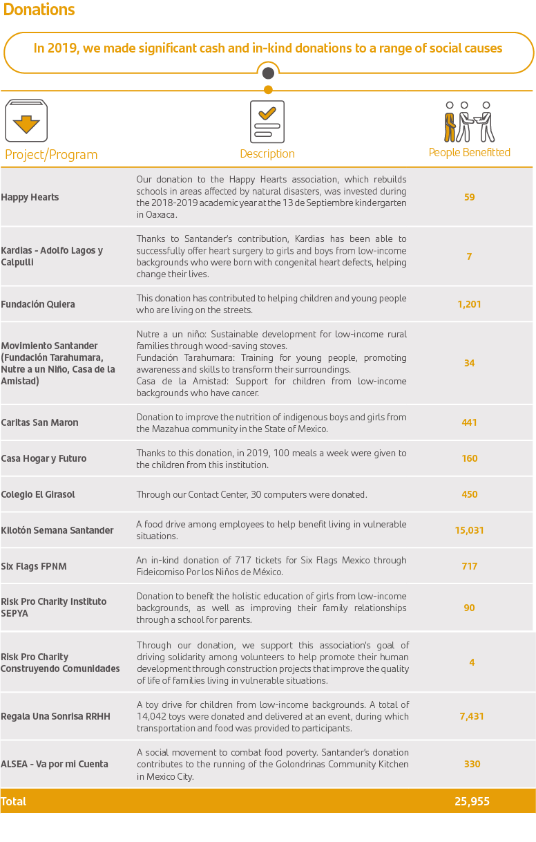 Fideicomiso por los Niños de México, Todos en Santander is a nationwide successful social investment model in Mexico, which came about as a proposal from our employees to voluntarily donate a portion of their salary to help underprivileged children, an initiative that has been supported by the Bank since its inception.