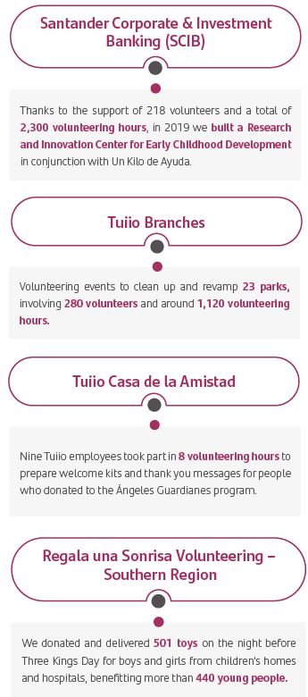 Through these volunteering programs, our employees raise awareness regarding environmental and social problems, and they also become involved in finding a solution, creating a chain of best practices that have a positive impact both inside and outside Santander.