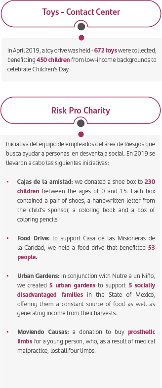 Through its commitment to contributing to the social wellbeing of Mexican children in the areas of nutrition, health and education, we are certain that it has received more than it has given to the social organizations that we support.