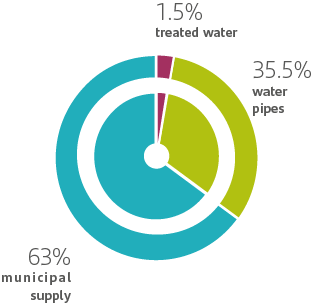 During the year, the total amount of water we used17 reached 461,258.75 m3 of which 6,799m3 was treated water, 154,571m3 comes from pipes and the rest was from the local water supply.