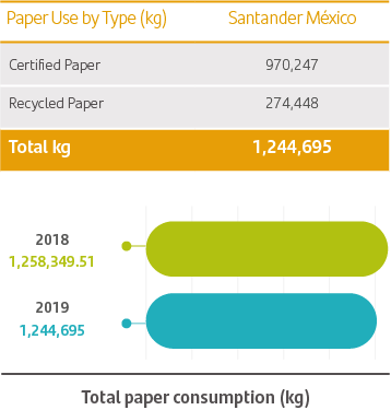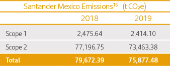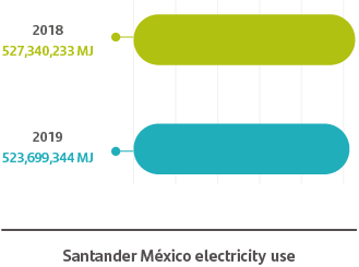 15 15The calculation of Santander Mexico’s Carbon Footprint for 2019 was undertaken using the methodology proposed by the GHG Protocol Corporate Accounting and Reporting Standard, the World Resources Institute (WRI) and the World Business Council for Sustainable Development (WBCSD), satisfying the requirements of ISO 14064-1, NMX-SAA-14064 and that stipulated in the Climate Change Law in the area of the National Emissions Registry and considering the Calorific Powers published by CONUEE (2020), the Global Warming Potentials defined by the GHG Protocol and the National Electric System’s Emission Factor for the period 2019 (CRE). The calculation considers an operational approach. The GHGs considered in this calculation are: carbon dioxide (CO2), nitrous oxide (N2O) and methane (CH4).To be more energy efficient, we have implemented a range of tools to measure and identify areas in which our energy consumption is highest and take the steps necessary to rectify this situation.