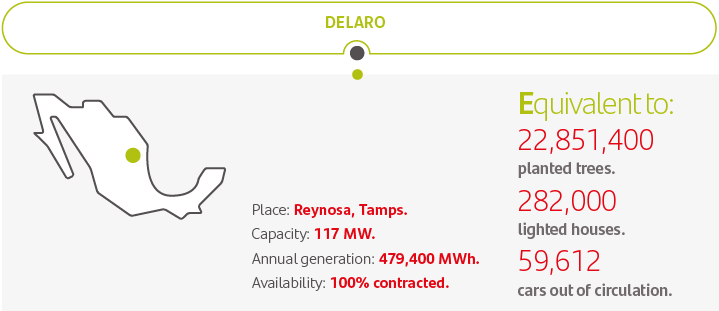 The origin of this renewable energy will be the Delaro wind farm, which is being built by Thermion and should be completed by 2020. Once up and running, the farm will provide 45 GWh per year, which represents a little over 30% of our consumption from the national grid. It is important to mention that of our total current consumption, 50% comes from efficient natural gas co-generation, while 30% will come from a renewable wind source. This is the first step in achieving our local goal, which is aligned with our global goal of using 100% renewable energy by 2025.
