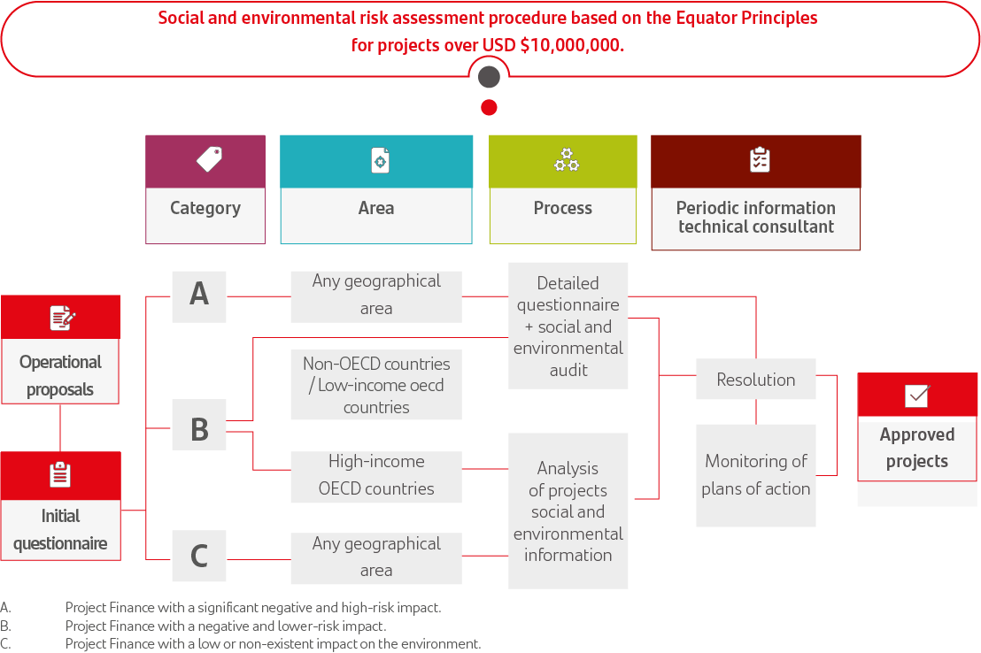 The Group’s Social and Environmental Policy specifies that any project over USD $10 million must comply with the Equator Principles, the agreement among global financial institutions that governs the financing of projects through a responsible, ethical and transparent approach that also encompasses social and environmental awareness.