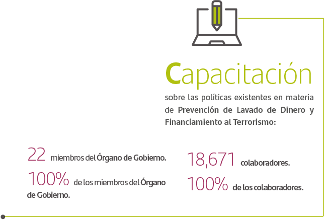 Sin duda, una prioridad en materia de ética empresarial es la prevención de lavado de dinero y el financiamiento al terrorismo. Para abordar estos temas contamos con procedimientos que nos permiten erradicar toda actividad que busque ocultar información sobre el origen de los fondos.