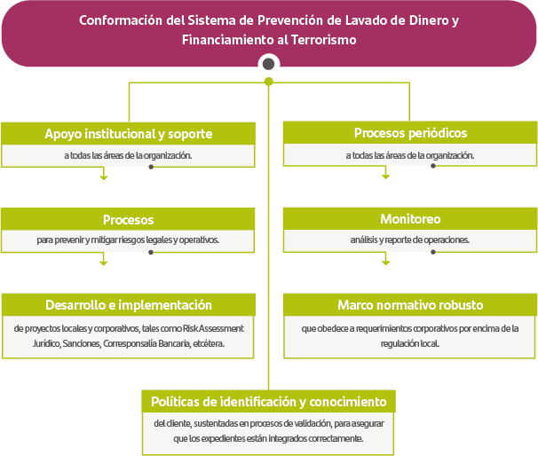 Para cumplir con esta misión creamos un Sistema de Prevención de Lavado de Dinero y Financiamiento al Terrorismo (PLD/FT) que establece las políticas, lineamientos, directrices, flujos y controles y para evitar el manejo de fondos de origen incierto.