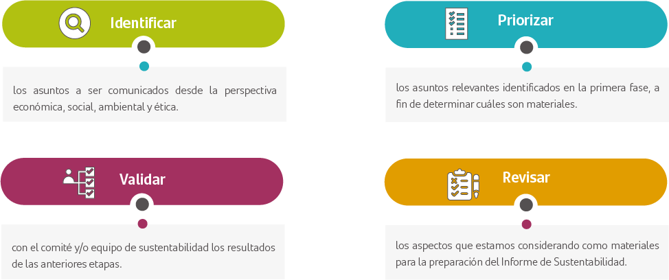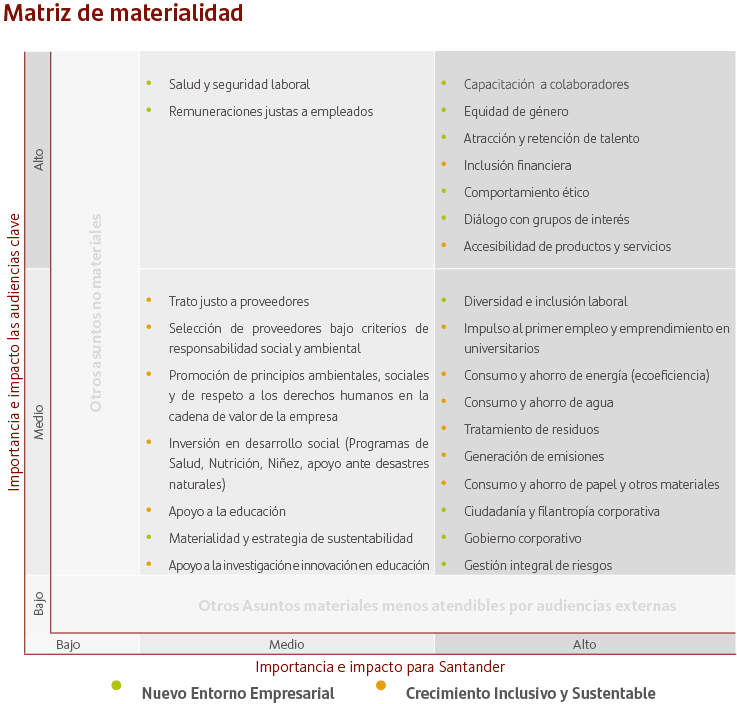 El informe de Banca Responsable 2019 se basó en el estudio de materialidad del año anterior debido a que no se presentaron cambios significativos en las operaciones del Banco. Por ello, los asuntos más relevantes en materia económica, social, ambiental y ética, así como los indicadores reportados, se mantuvieron igual.