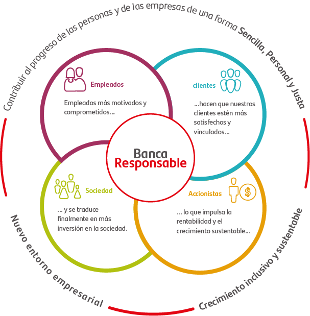 Tratamos a nuestros empleados y clientes de forma justa y equitativa, somos transparentes y cumplimos nuestras promesas. Entablamos buenas relaciones con los diversos grupos de interés porque entendemos que lo que es bueno para ellos lo es también para Santander.